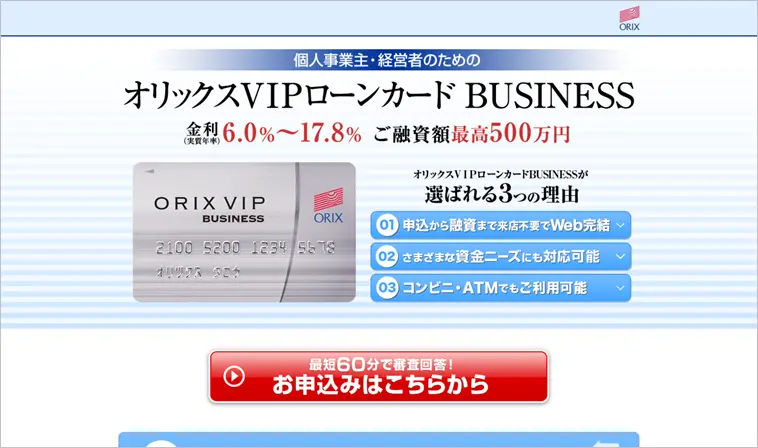 公式サイト オリックスVIPローンカードBUSINESS