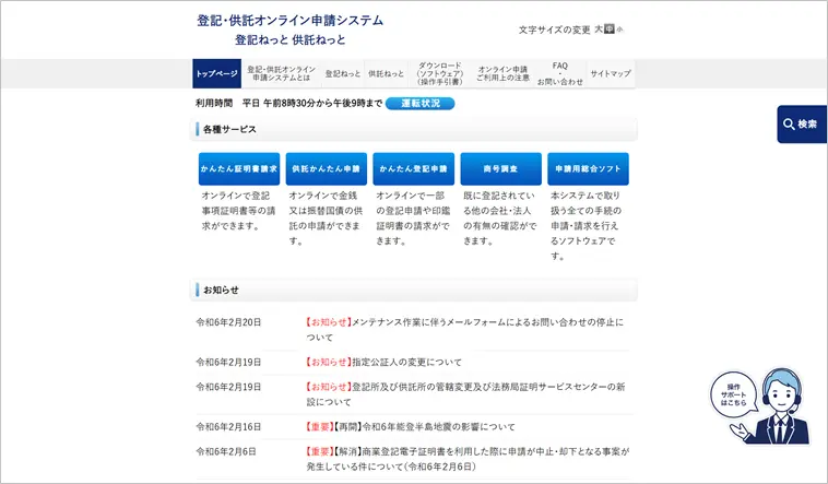 公式サイト 登記・供託オンライン申請システム 登記ねっと 供託ねっと