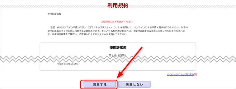 利用規約が表示されますので、規約を確認して「同意する」をクリックします。