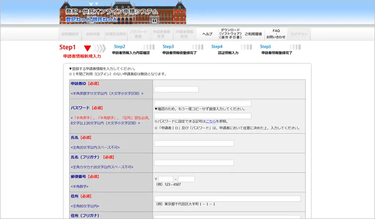 個人情報入力画面に移動しますので、必須事項を全て入力し、申請者情報の登録を完了させて下さい。