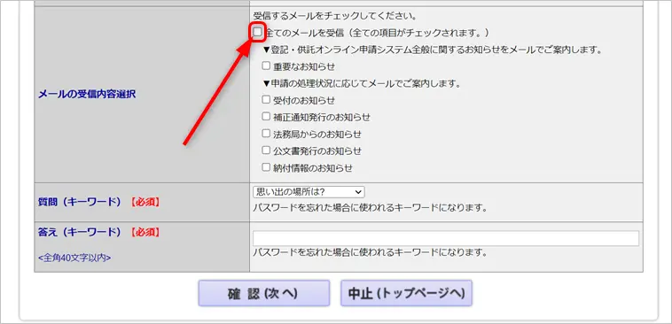 申請受付、申請情報の到達(法務局への)、決済確認のメールが都度届くようになります。