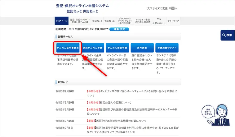 下記リンクをクリックして、「登記・供託オンライン申請システム」に移動して下さい。