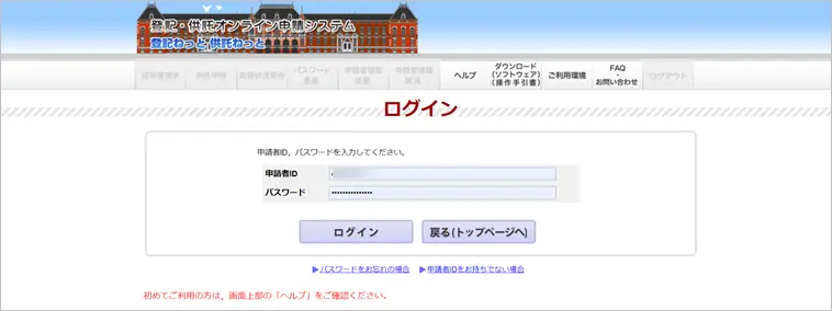 申請者情報の登録を済ませたら、オンラインシステムにログインします。