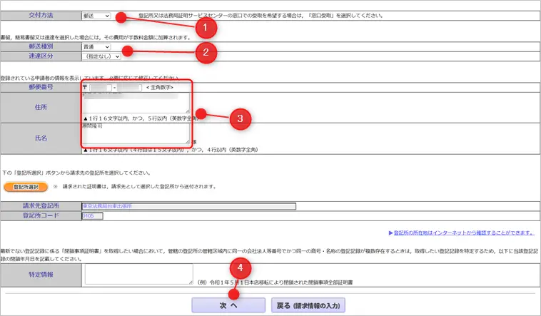 オンライン請求は郵送、もしくは法務局で直接受け取る方法から選択できますので、お急ぎの方は直接受け取るを選択すれば良いですし、急いでなければ郵送で取得した方が楽です。